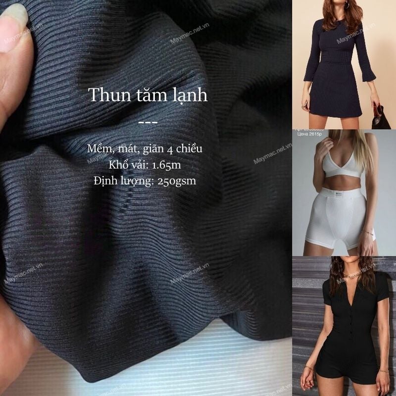 [Vải MM] [756] Vải Thun Tăm Lạnh Co Giãn 4 Chiều May Áo, Váy, Đầm, Bộ Thiết Kế (Giá bán 0.5m)