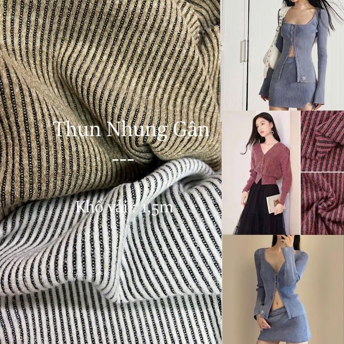 [Vải MM] [704](Giá 0.5m) Vải Thun Nhung Gân Co Giãn 4c May Áo, Váy, Đầm Thời Trang
